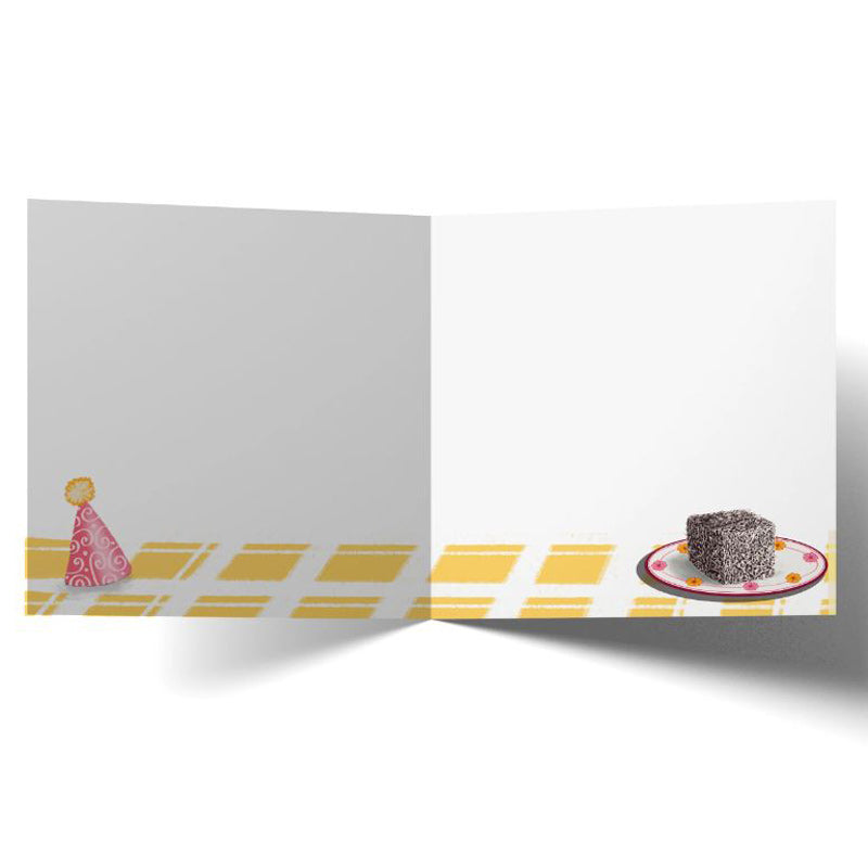 A 14 x 14cm greeting card with illustrations both inside and out. Made in Australia.