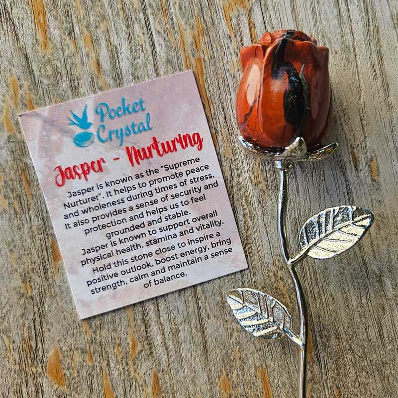 - Includes Jasper rose crystal and card with crystal properties and meaning
