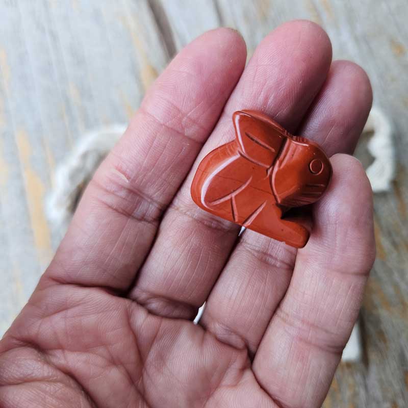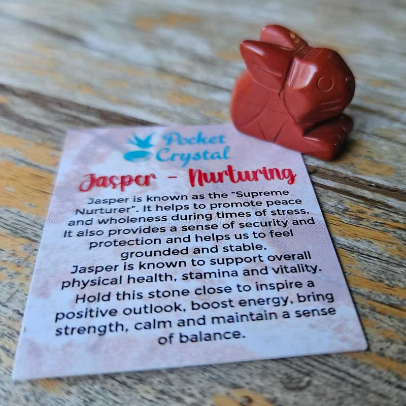 - Includes jasper rabbit crystal, card with crystal properties and meaning and fabric drawstring bag.