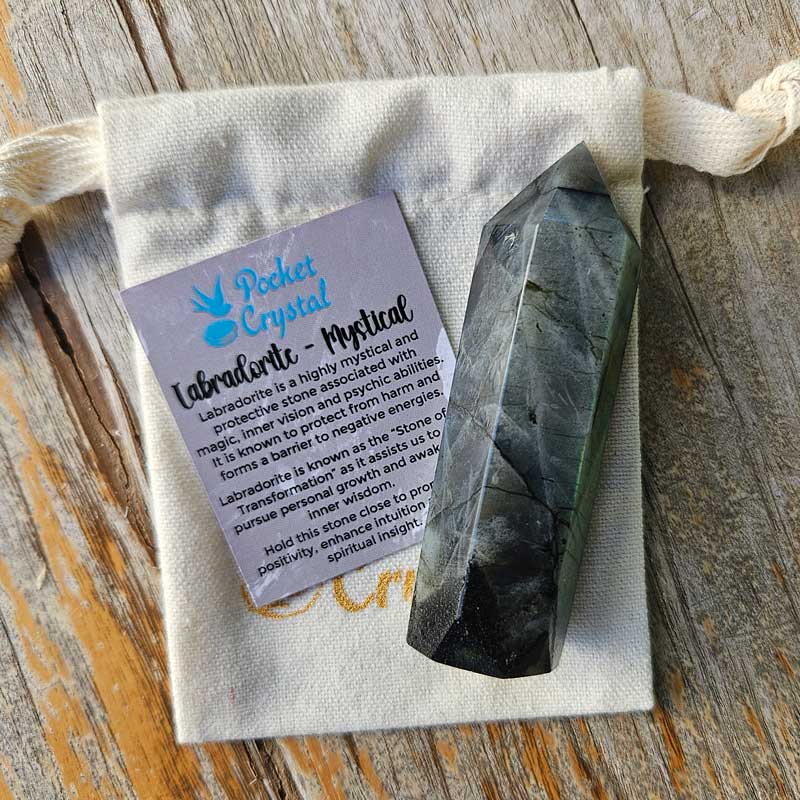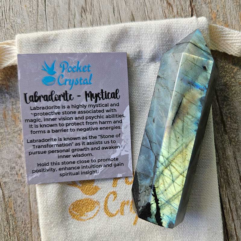 This beautiful Labradorite Pocket Crystal Point Wand has been designed to be the ultimate pocket-sized meaningful gift for someone special.