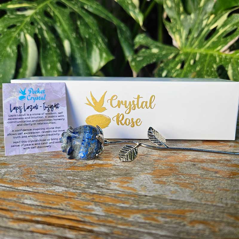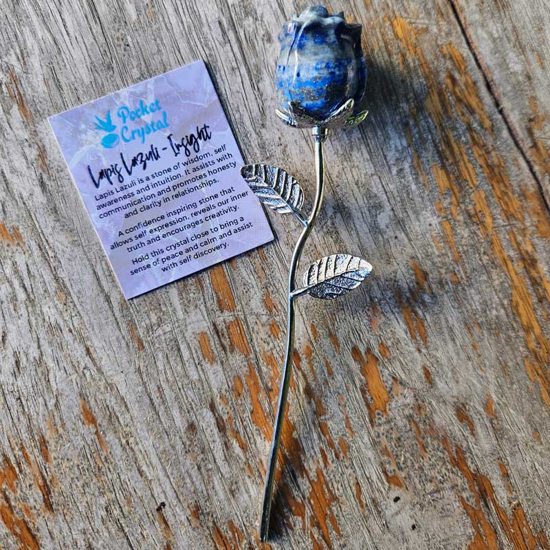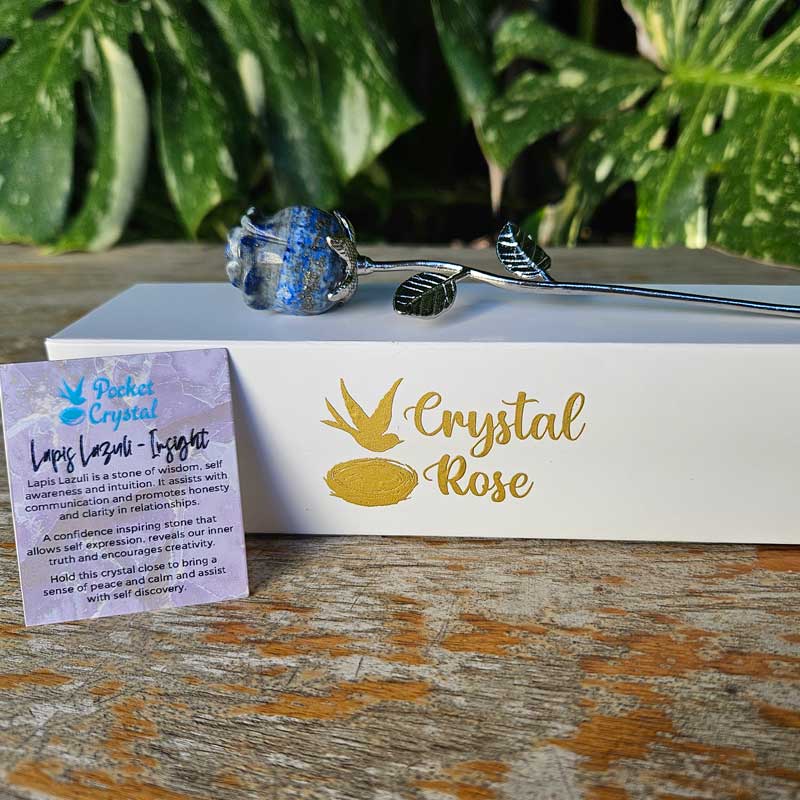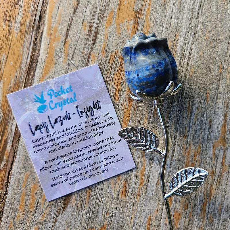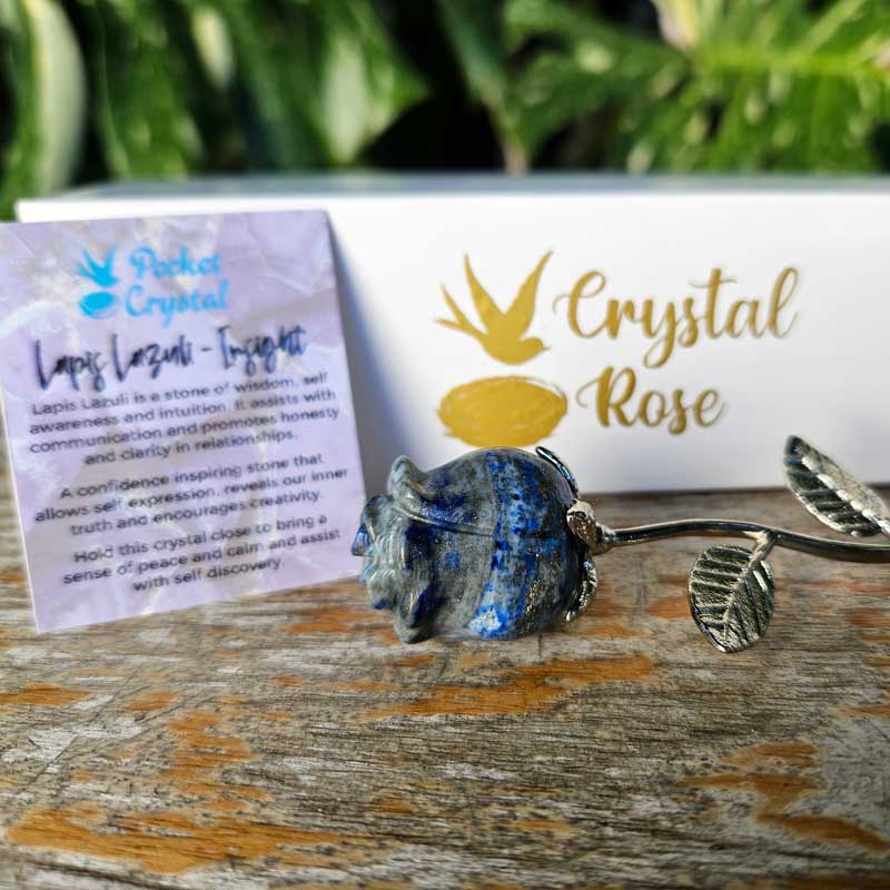 - Includes Lapis Lazuli rose crystal and card with crystal properties and meaning
