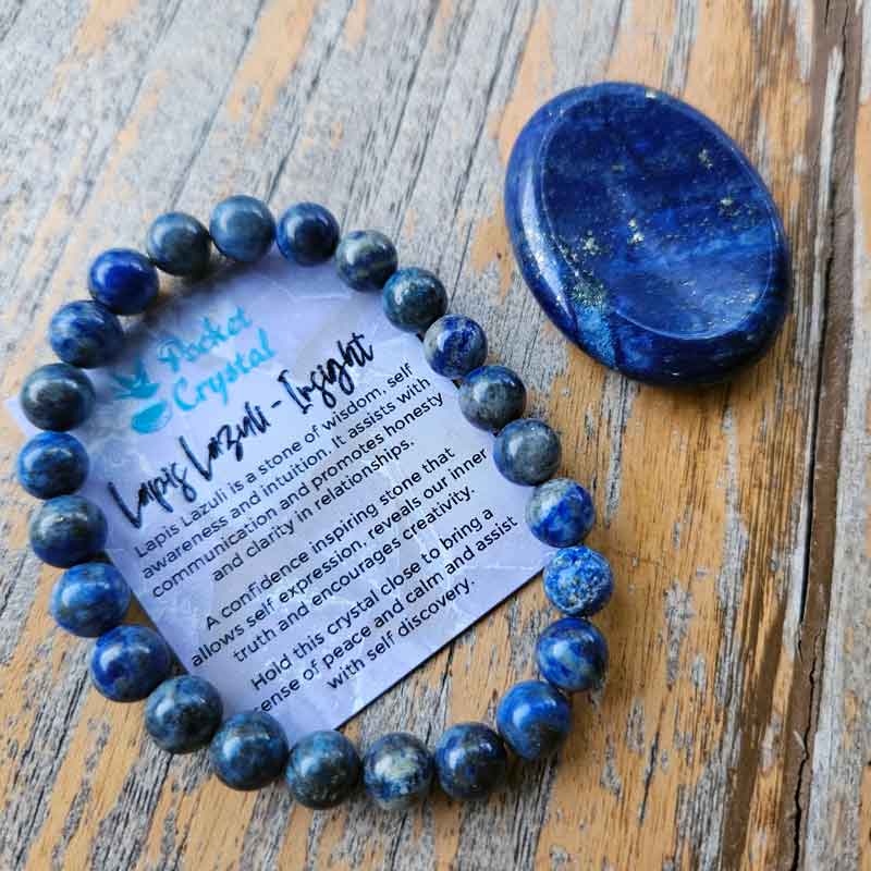 - Includes Lapis Lazuli worry stonecrystal, card with crystal properties and meaning and fabric drawstring bag.
