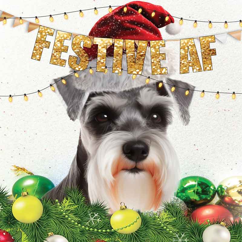 Lucy Loves Life Card - Festive AF Mini Schnauzer