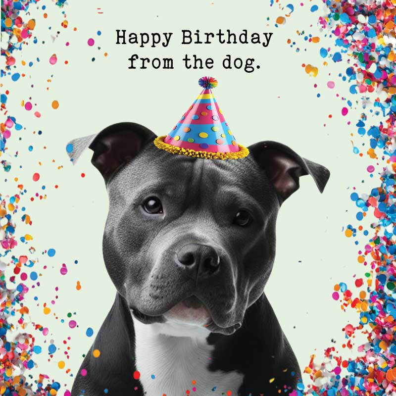 Lucy Loves Life Card - Happy Birthday From The Dog (Staffy)