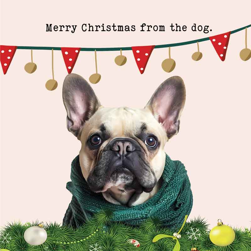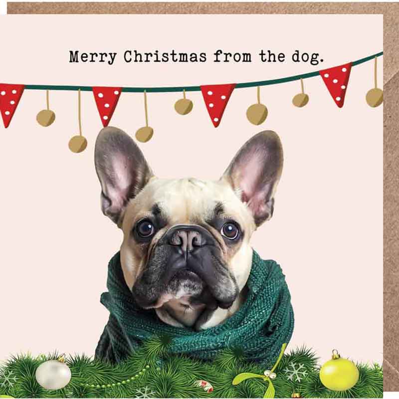 Lucy Loves Life Card - Merry Christmas From The Dog (Frenchie)