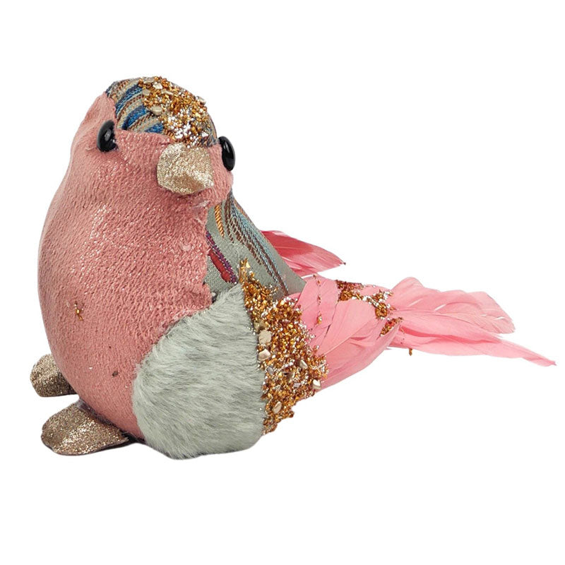 Patchwork Sitting Bird Christmas Ornament - Pink