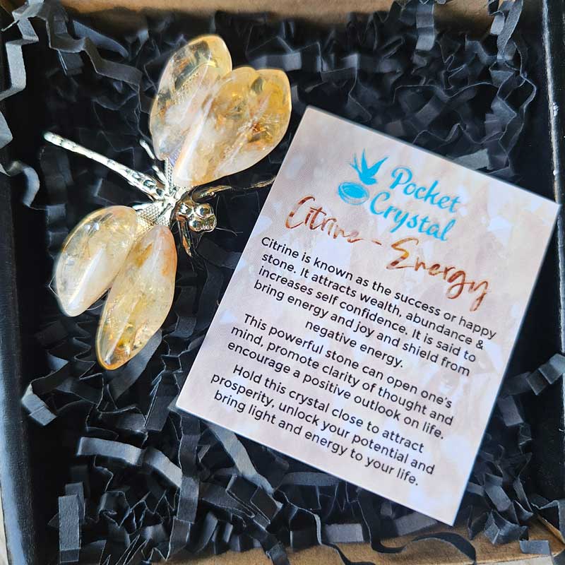Dragonfly Crystal - Citrine Energy & Success (Silver)