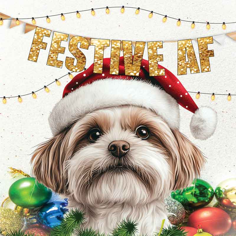Lucy Loves Life Card - Festive AF Maltese Shih Tzu