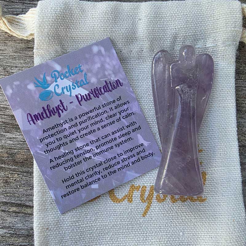 - Includes amethyst angel crystal and card with crystal properties and meaning