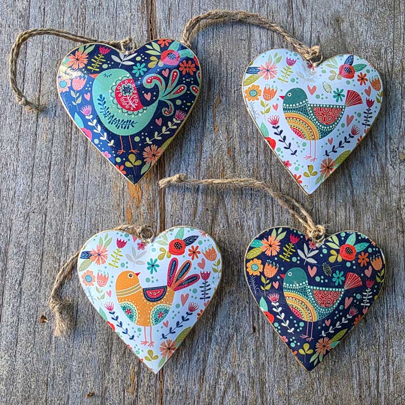 Bird Multicolour Metal Heart Ornament - Black (B)