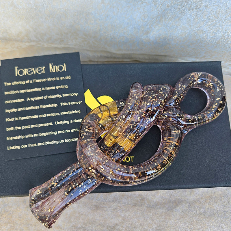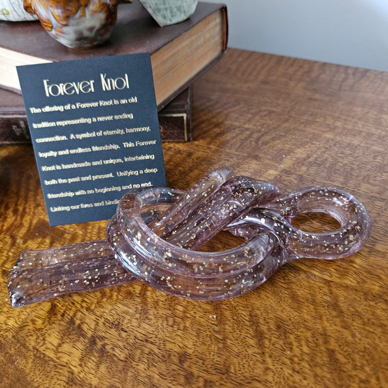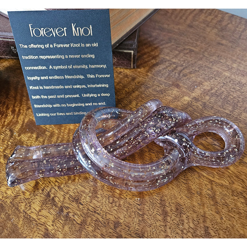 Show someone how much you care with the unique gift of a Forever Knot! This stunning Forever Knot has been hand made and mouth blown to create a one of a kind piece, perfect for a one of a kind friend, family member, partner or loved one!