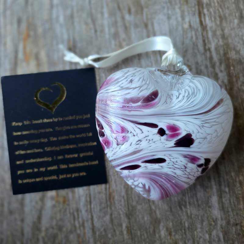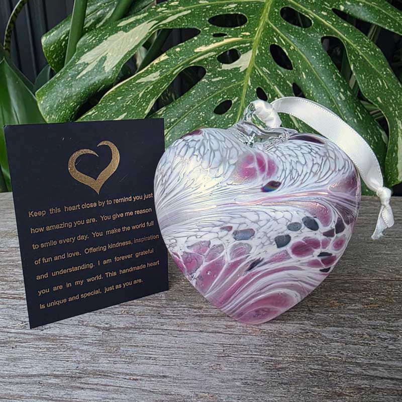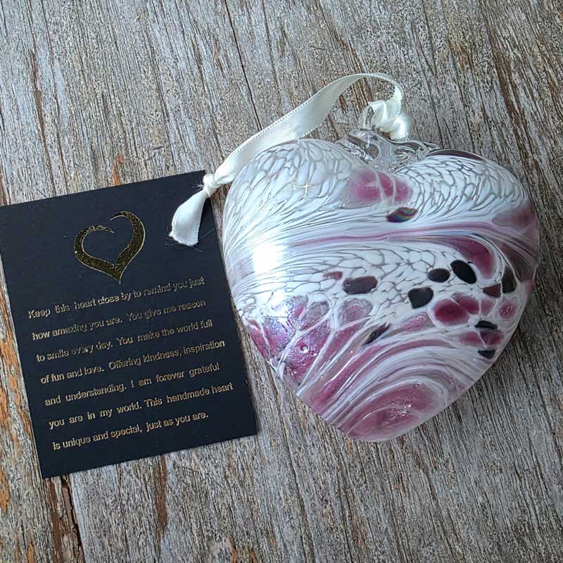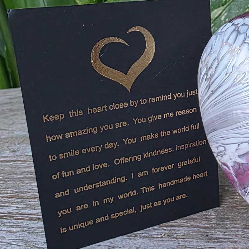 The affirmation card included with each gift boxed glass heart reads: