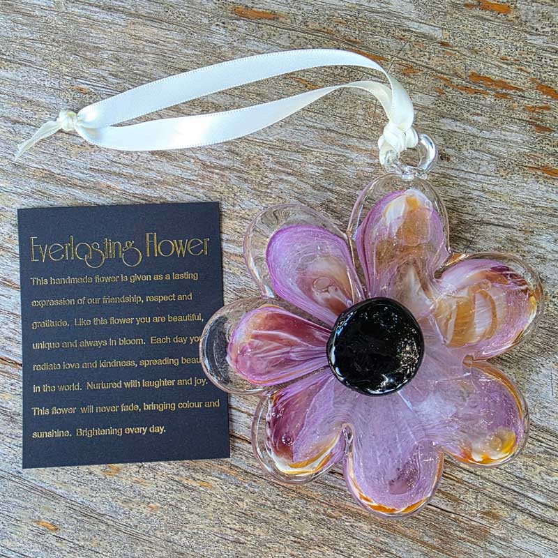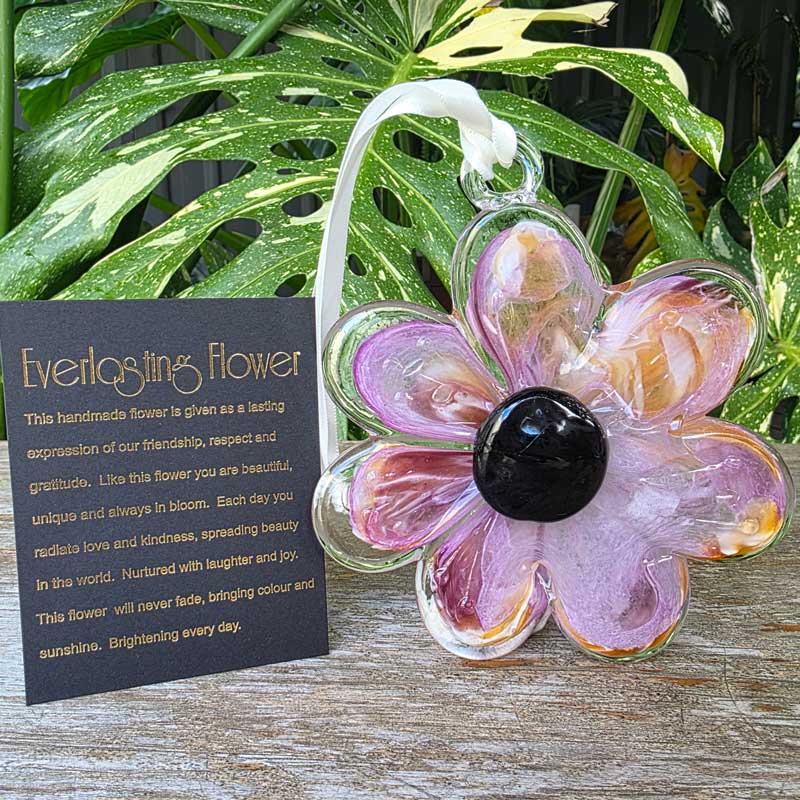 Show someone how much you care with the unique gift of a Hanging Everlasting Flower! This stunning Everlasting Flower has been hand made and mouth blown to create a one of a kind piece, perfect for a one of a kind friend, family member, partner or loved one!