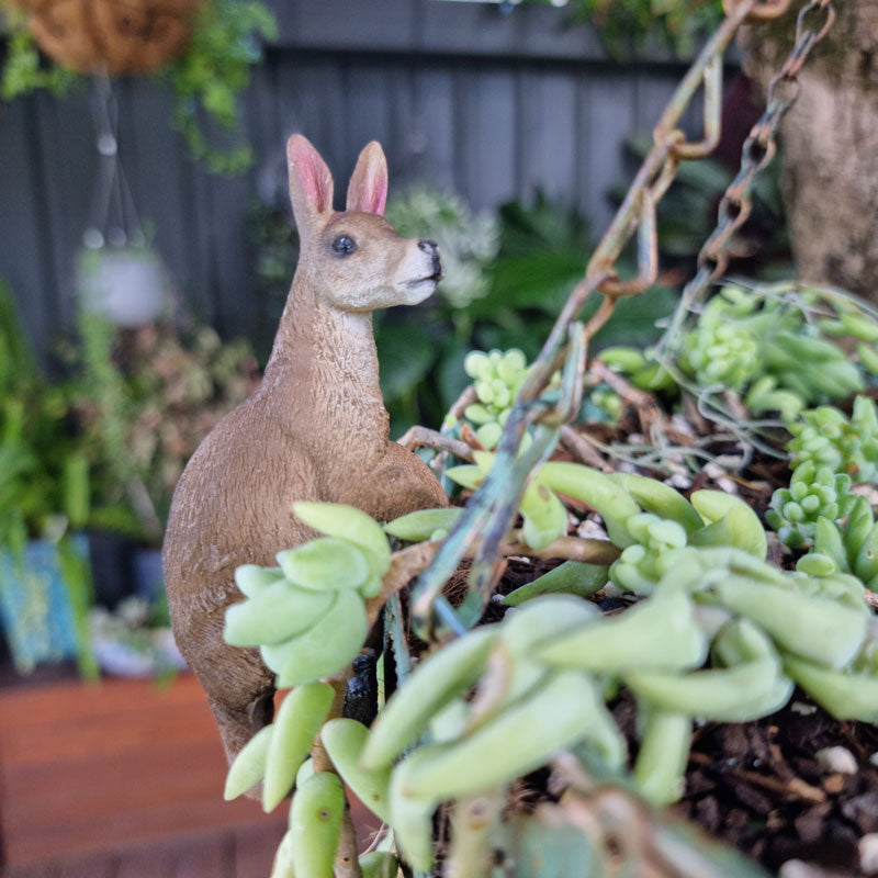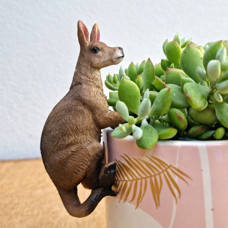 A cute kangaroo figurine that sits at the top of your pot plant., branch, vase or trellis. Adds a decorative touch to liven up your garden. The perfect little gift for any plant or animal lover or a treat for yourself.