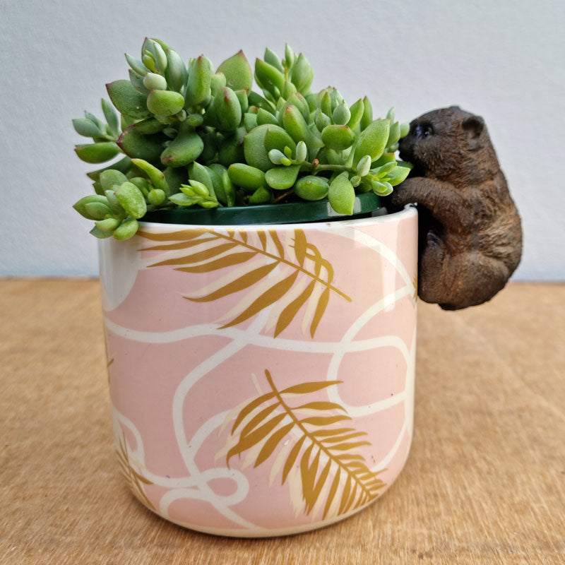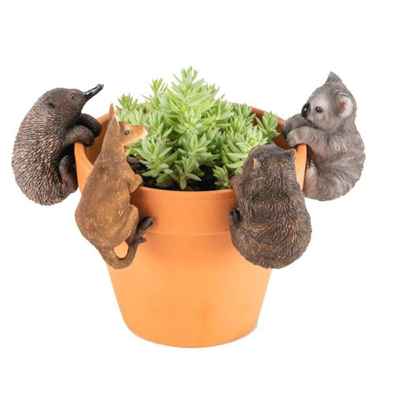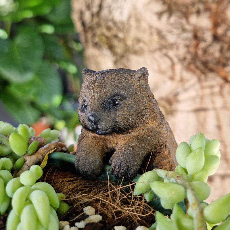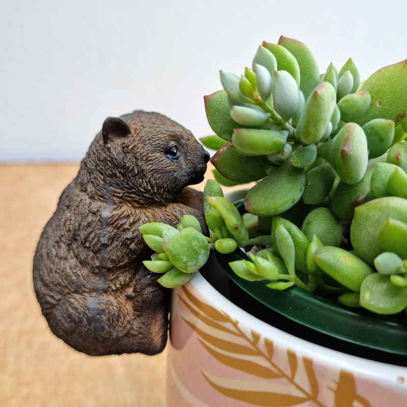 A cute wombat figurine that sits at the top of your pot plant., branch, vase or trellis. Adds a decorative touch to liven up your garden. The perfect little gift for any plant or animal lover or a treat for yourself.