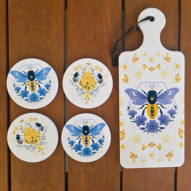 We are in love with this super cute and super functional rectangular trivet in a bee and honeycomb design. Crafted from durable ceramic with a cork base to protect kitchen surfaces in style.