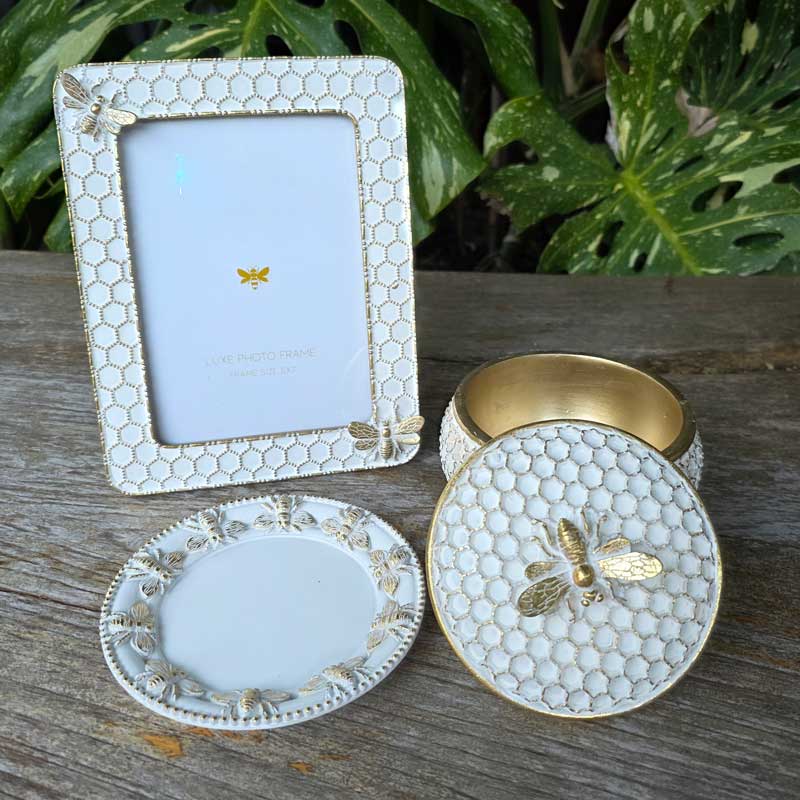 This photo frame combines the best of both worlds - stylish and whimsical all at once. Between the subtle honeycomb texture and the two charming gold bees, it's a statement piece and a must for bee lovers.