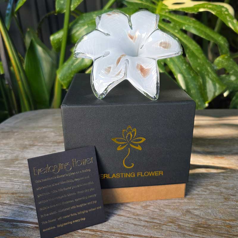 Show someone how much you care with the unique gift of an Everlasting Flower! This stunning Everlasting Flower has been hand made and mouth blown to create a one of a kind piece, perfect for a one of a kind friend, family member, partner or loved one!