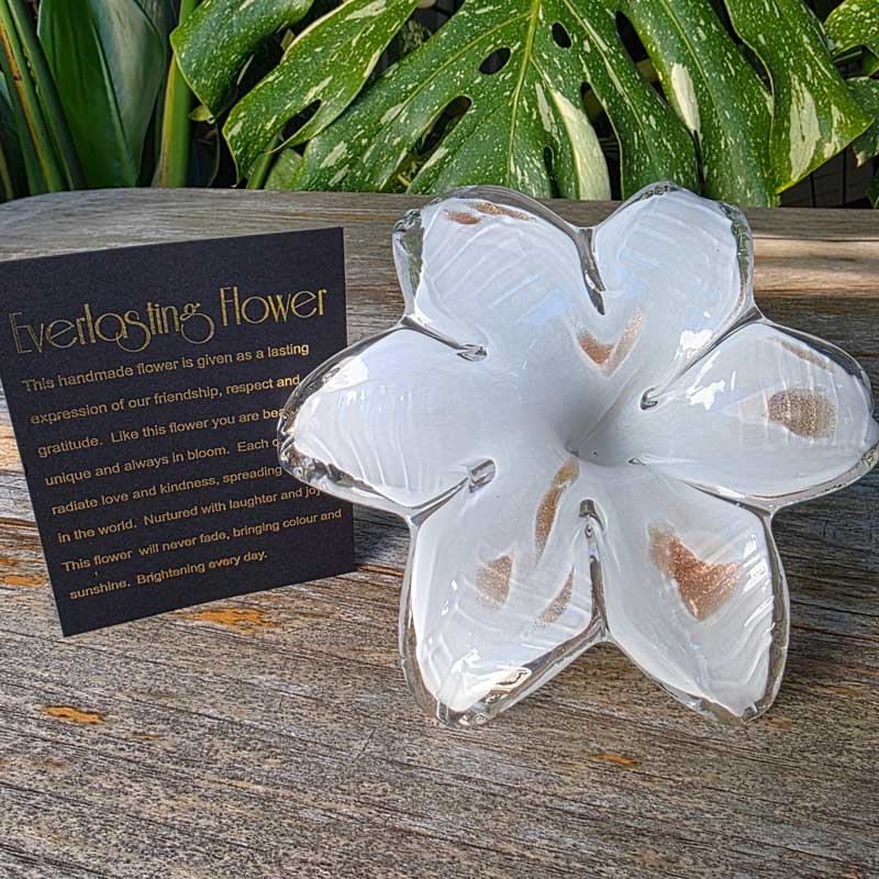 Glass Everlasting Flower - White & Gold