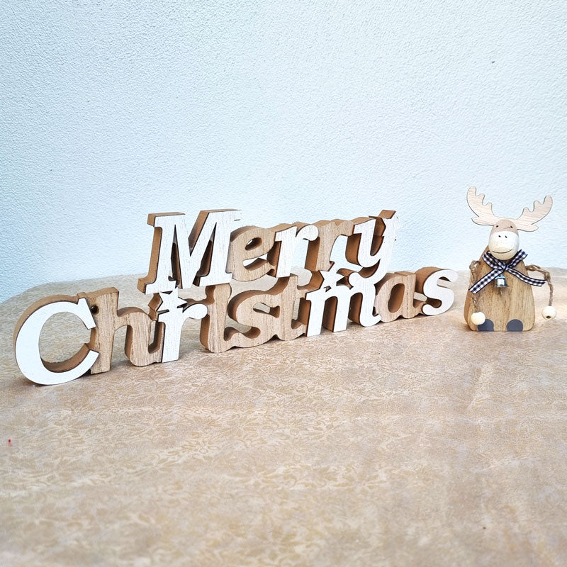 A simple and elegant wooden sign featuring the words MERRY CHRISTMAS. A great festive addition to your home!