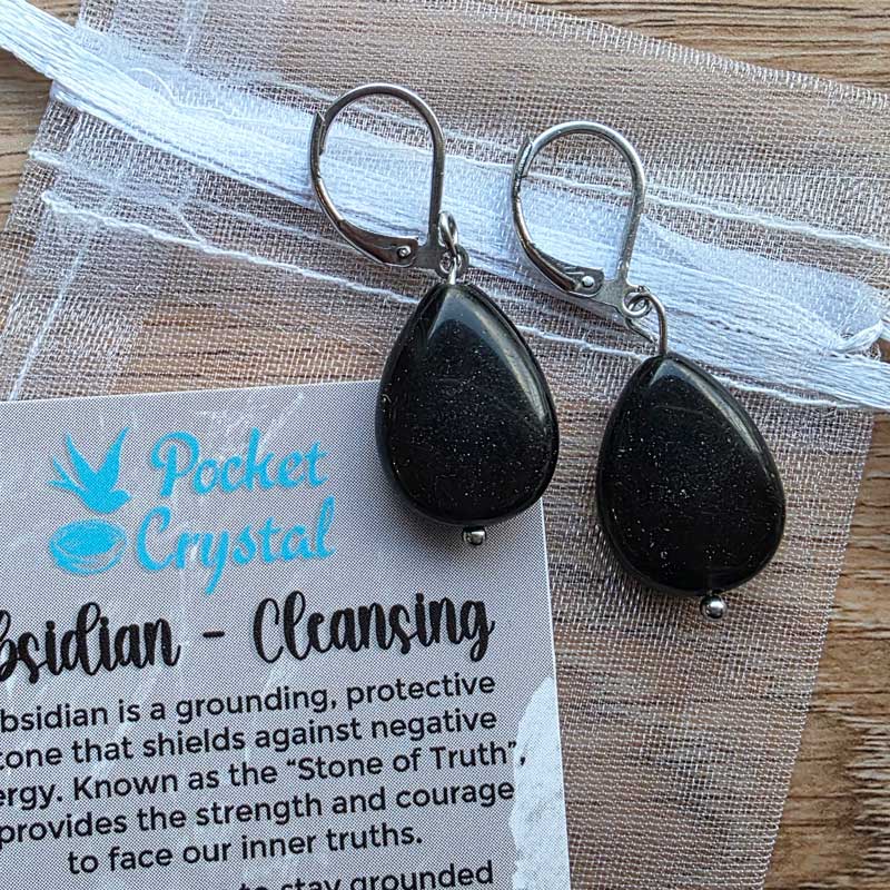 A simple, elegant and beautiful set of drop earrings featuring obsidian crystal. Crafted from sterling silver so perfect for sensitive ears.