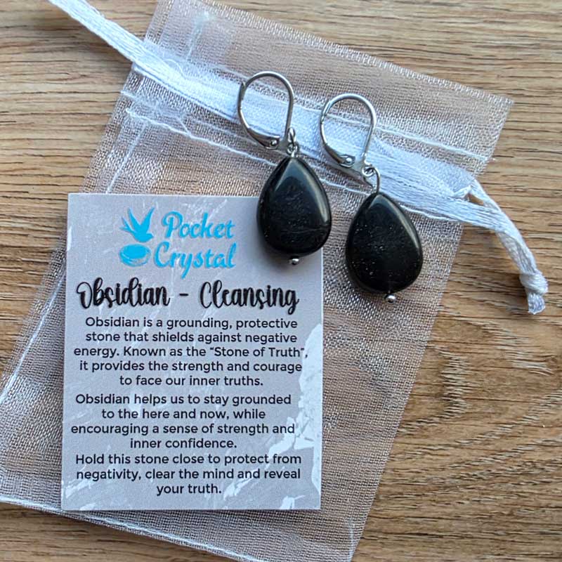 - Includes earrings, crystal meaning card and organza bag
