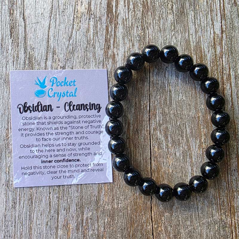 A beautiful bracelet featuring obsidian crystal stones. There is nothing like wearing natural stone and these bracelets work perfectly on their own, or layered into beautiful stacks to create a more dramatic look.