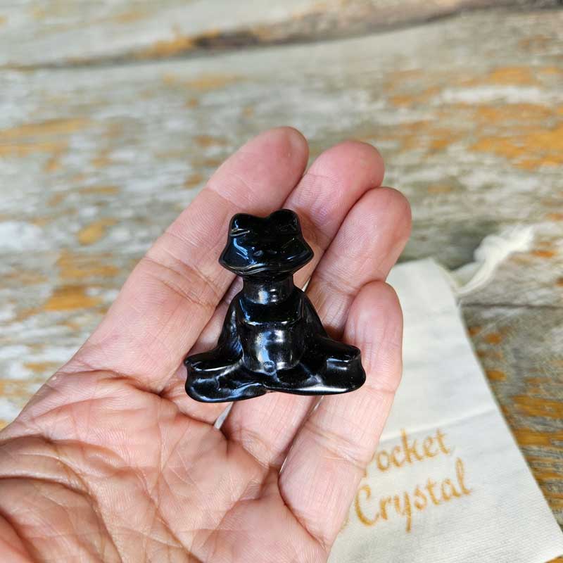 Obsidian Pocket Crystal Yoga Frog - Cleansing