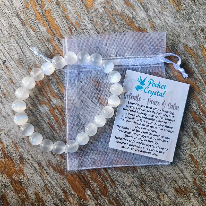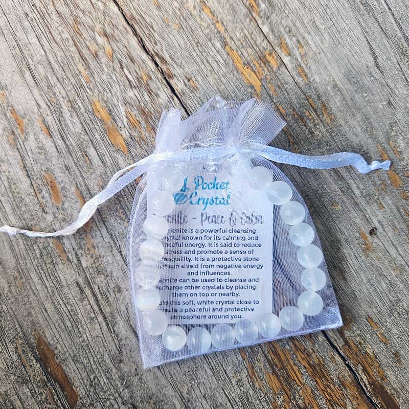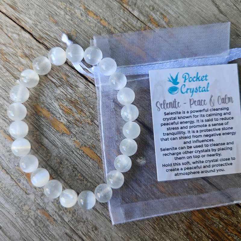 Selenite is a powerful cleansing crystal known for its calming and peaceful energy. It is said to reduce stress and promote a sense of tranquillity. It is a protective stone that can shield from negative energy and influences. Selenite can be used to cleanse and recharge other crystals by placing them on top or nearby. Hold this soft, white crystal close to create a peaceful and protective atmosphere around you.