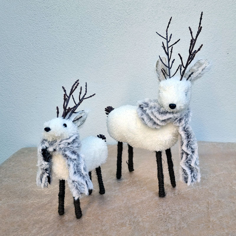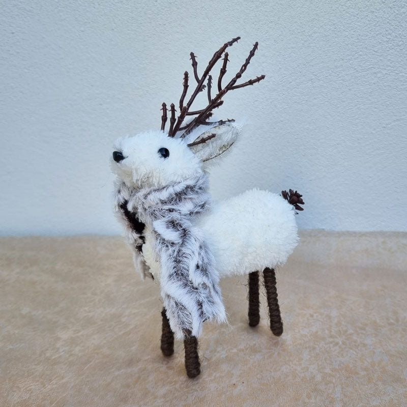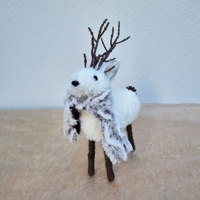 Standing Furry Deer With Scarf Christmas Ornament - Small