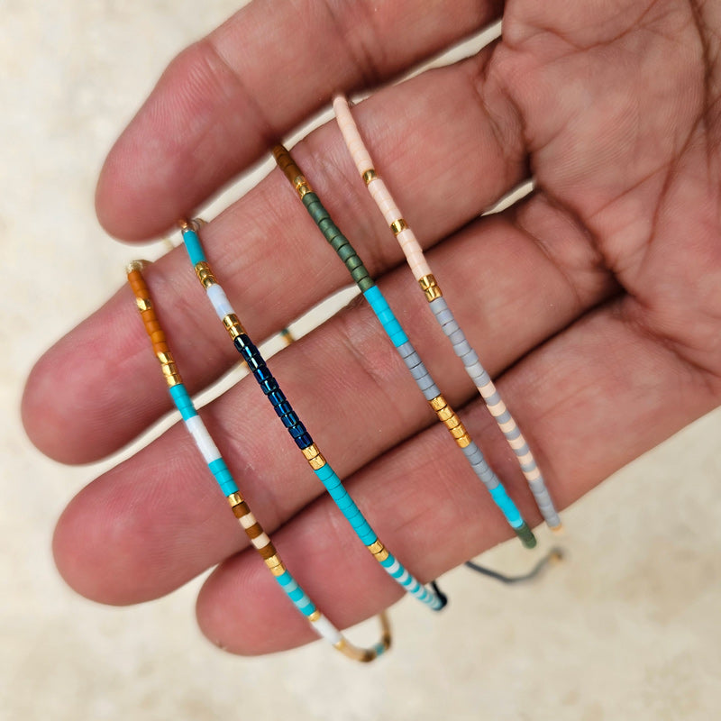 This is a pretty Friendship Bracelet made from small beads and is fully adjustable to all wrist sizes. Can also be worn as an anklet. These bracelets work perfectly on their own, or layered into beautiful stacks to create a more dramatic look.