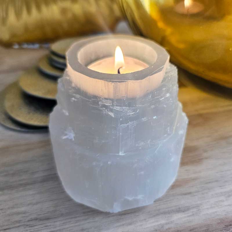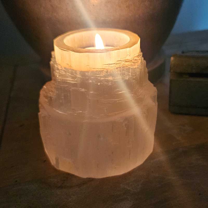 - Includes selenite crystal tealight candle holder, crystal card with crystal properties and meaning