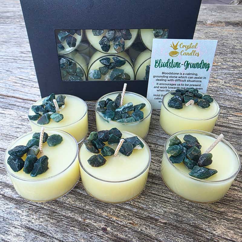 Bloodstone Crystal Soy Tealight Candles Set of 6 - Dragon's Blood