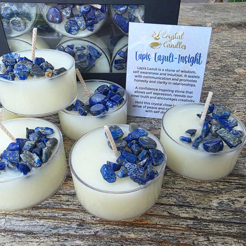 Lapis Lazuli Crystal Soy Tealight Candles Set of 6 - Beach