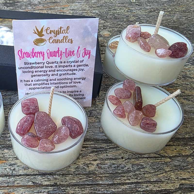 Strawberry Quartz Crystal Soy Tealight Candles Set of 6 - Summer Berries