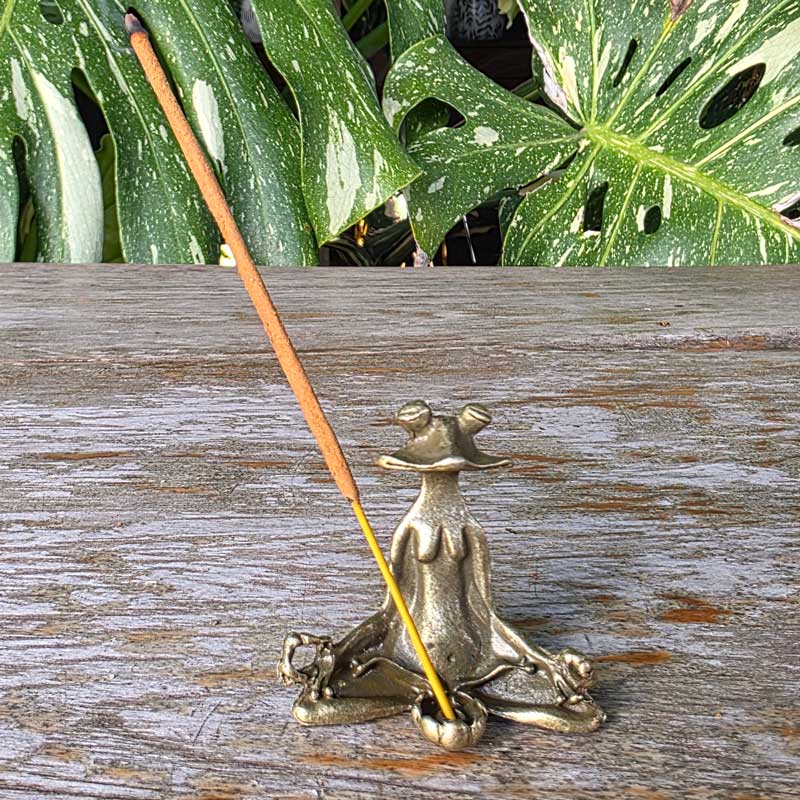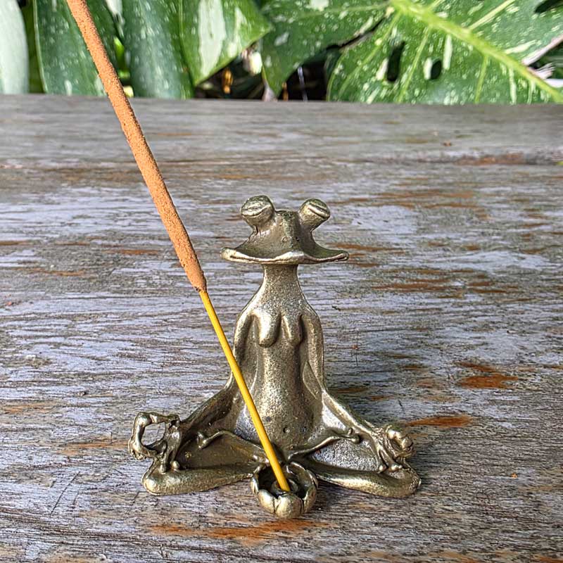 A super cute and quirky incense holder featuring a meditating frog in a yoga pose. Made from metal so it is made to last. Although this is an incense holder, it can also be placed on your desktop as a cute figurine to remind you to have a bit more Zen in your day.