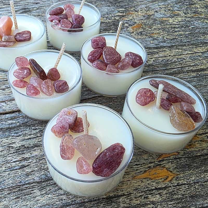 Strawberry Quartz Crystal Soy Tealight Candles Set of 6 - Summer Berries