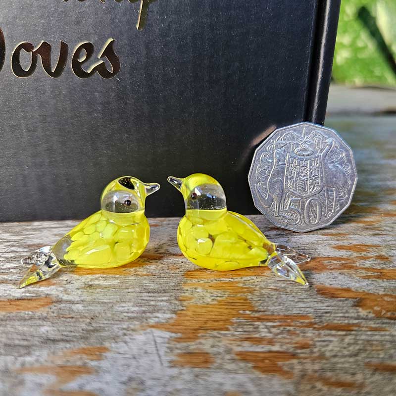 NOTE: These are miniature glass doves so please see size scaling photo next to 50 cent piece for size reference.