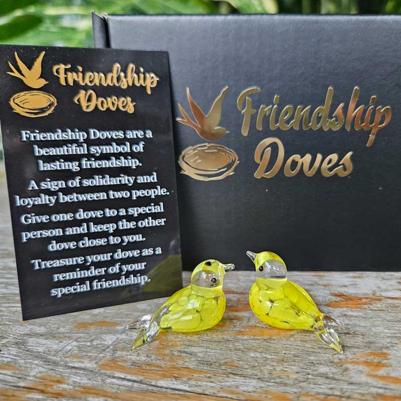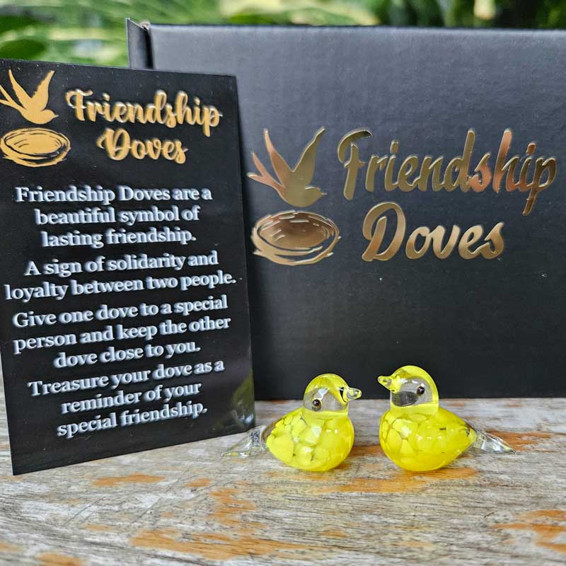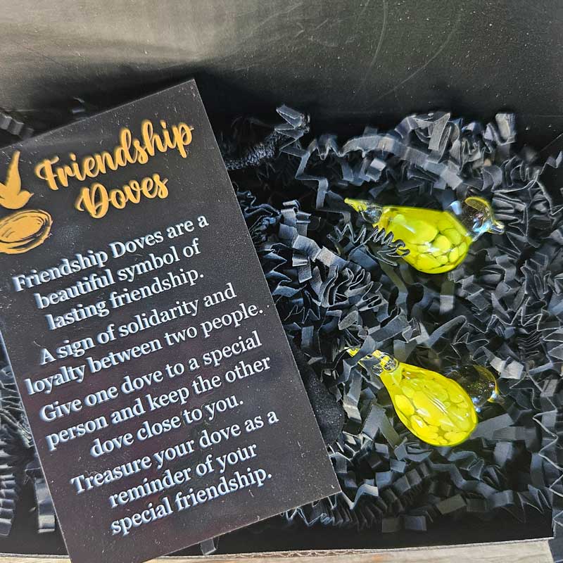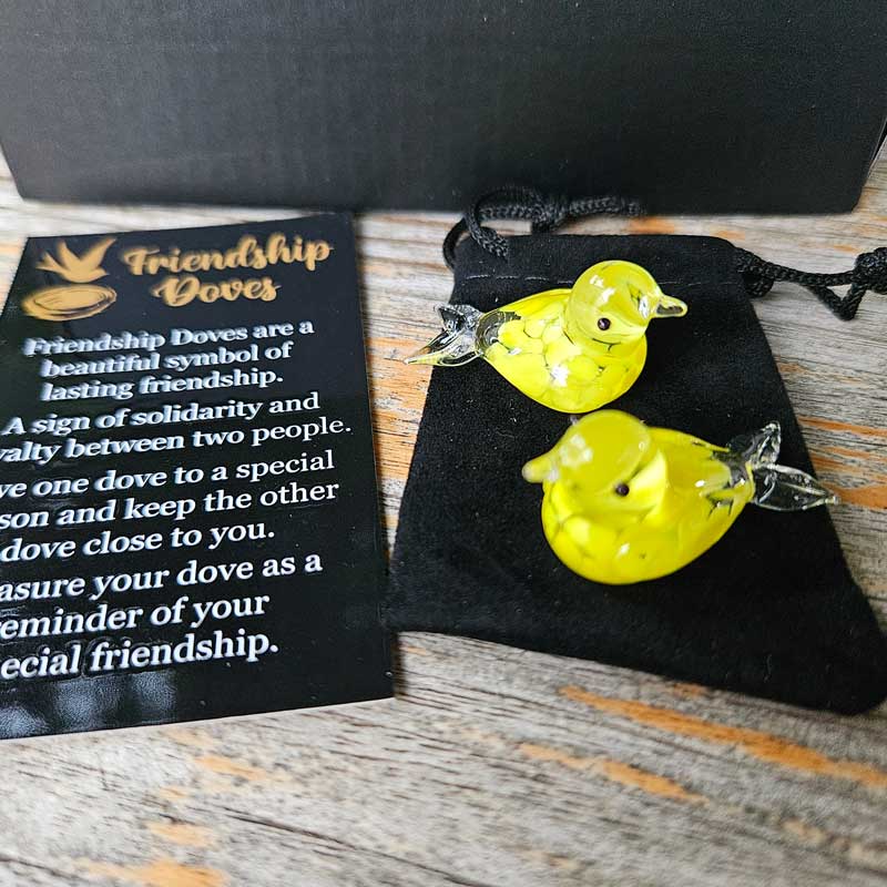 - Includes 2 glass handmade friendship doves in gift box nest, affirmation card & velvet pouch for 2nd dove