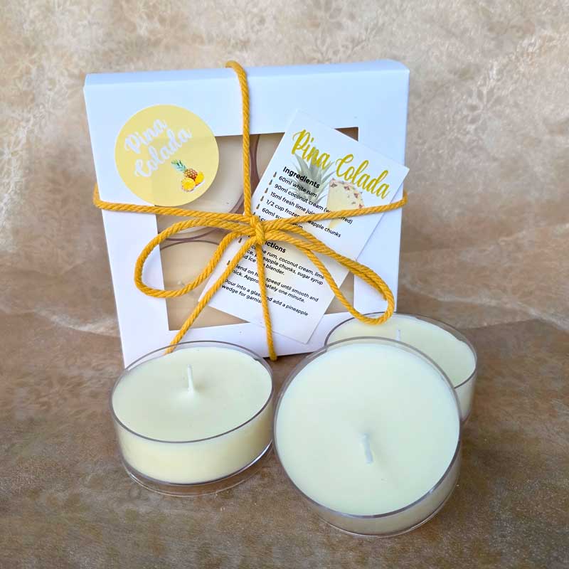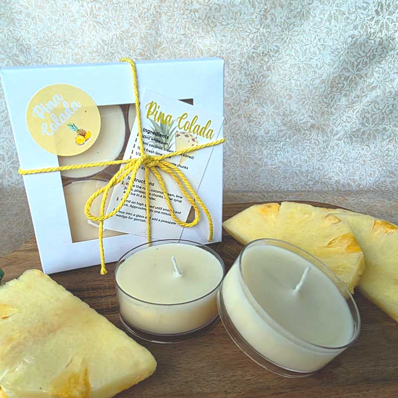 This beautifully boxed set of hand-poured soy wax candles captures the irresistible scent of a classic piña colada—blending creamy coconut and juicy pineapple with the charm of a premium candle.