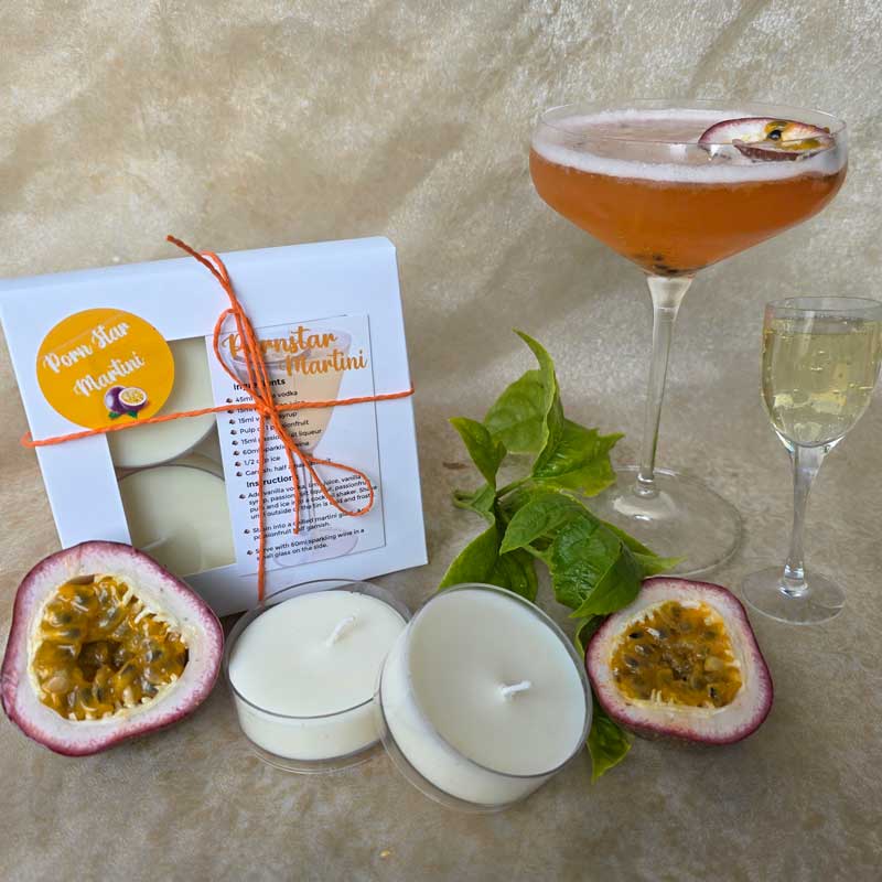 And the best part? Each set comes with our favourite Porn Star Martini recipe printed on a stylish card—so you can sip, relax, and glow in tropical bliss.