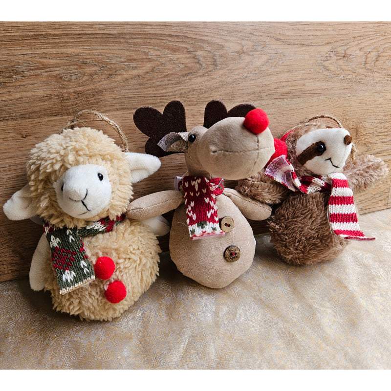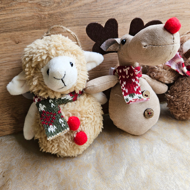 Hanging Fleecy Reindeer Christmas Ornament
