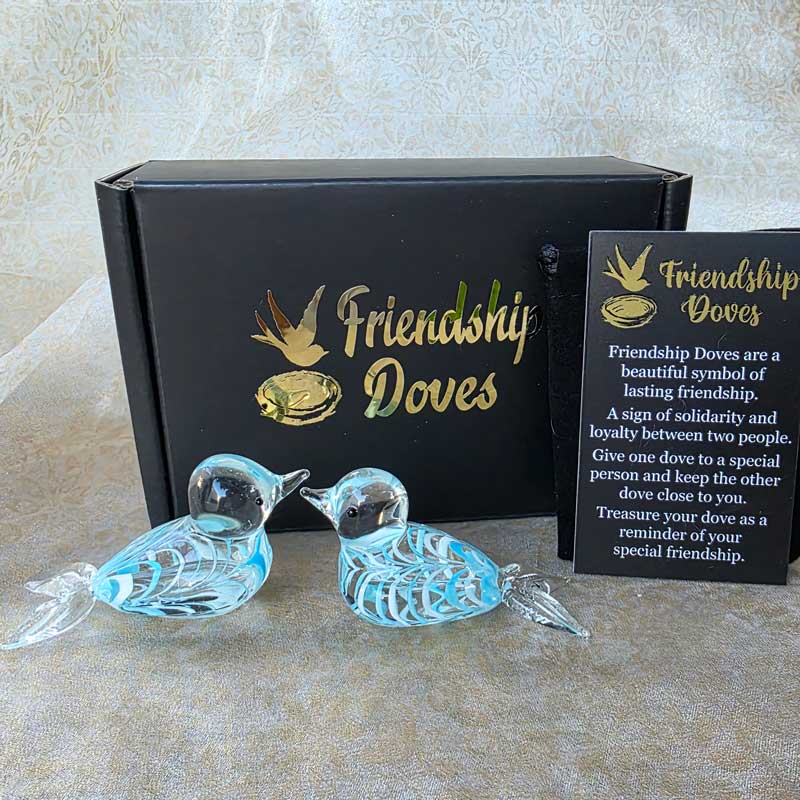 Friendship Doves are a beautiful symbol of lasting friendship. A sign of solidarity and loyalty between two people. Give one dove to a special person and keep the other dove close to you. Treasure your dove as a reminder of your special friendship. Each dove has been individually handcrafted by skilled glass artisans so each dove is as unique as your friendship. No two doves are alike!