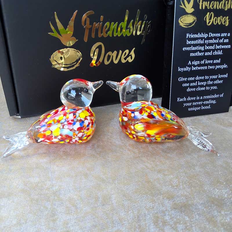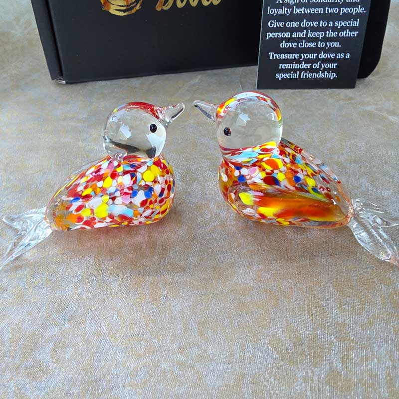 Friendship Doves (Handmade Glass) - Multicolour Speckle