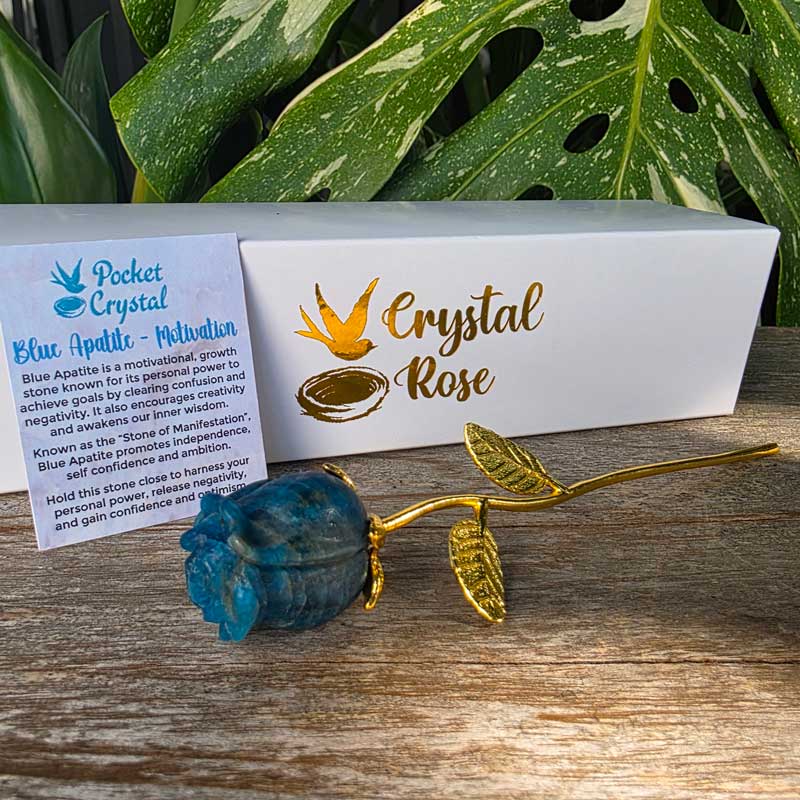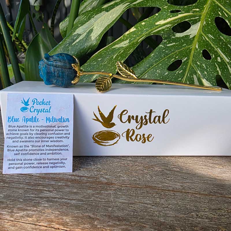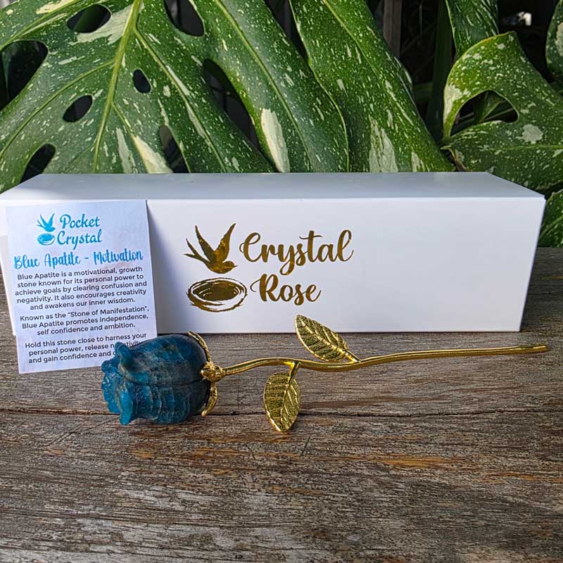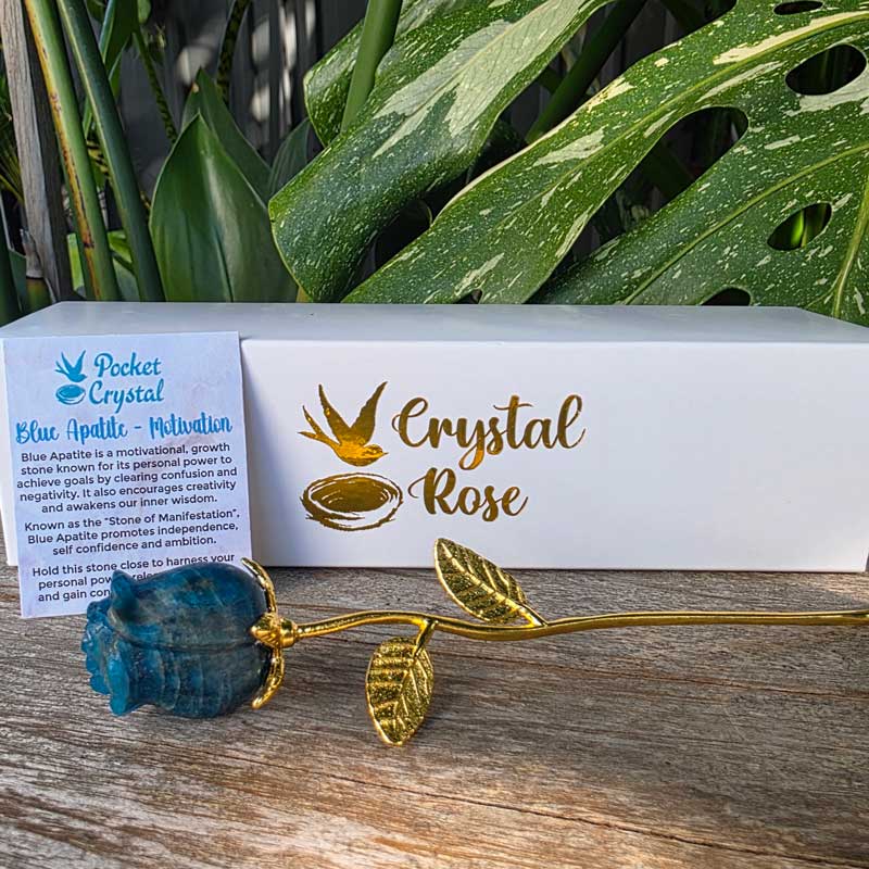 This beautiful Blue Apatite Crystal Rose is the perfect meaningful gift for someone special.