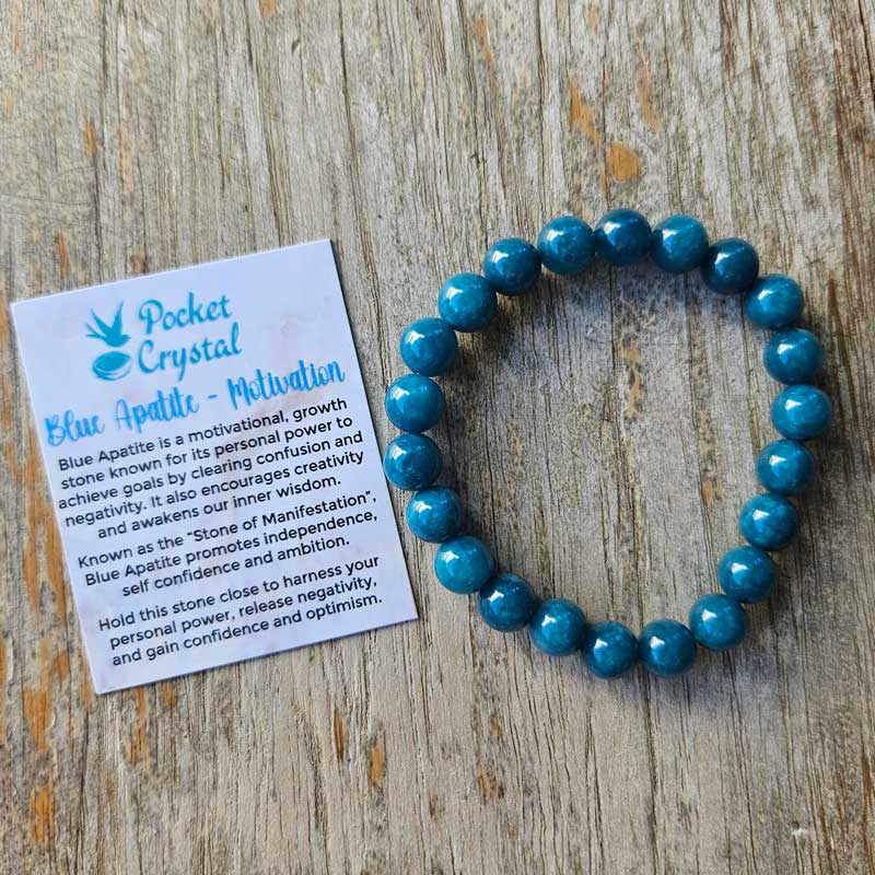 Blue Apatite is a motivational, growth stone known for its personal power to achieve goals by clearing confusion and negativity. It also encourages creativity and awakens our inner wisdom. Known as the “Stone of Manifestation”, Blue Apatite promotes independence, self confidence and ambition. Blue Apatite helps to harness your personal power, release negativity, and gain confidence and optimism.