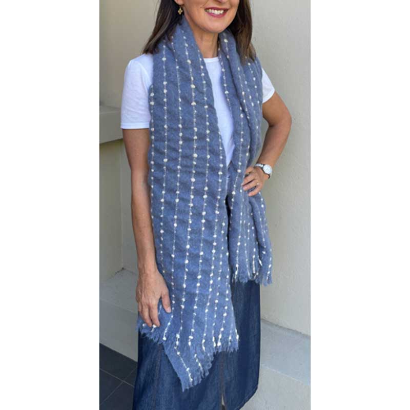 A gorgeous scarf in a stunning cornflower blue! This super soft scarf is perfect to keep you warm all winter. As soft as a baby's blanket, this scarf makes an awesome gift or treat for yourself this Winter.