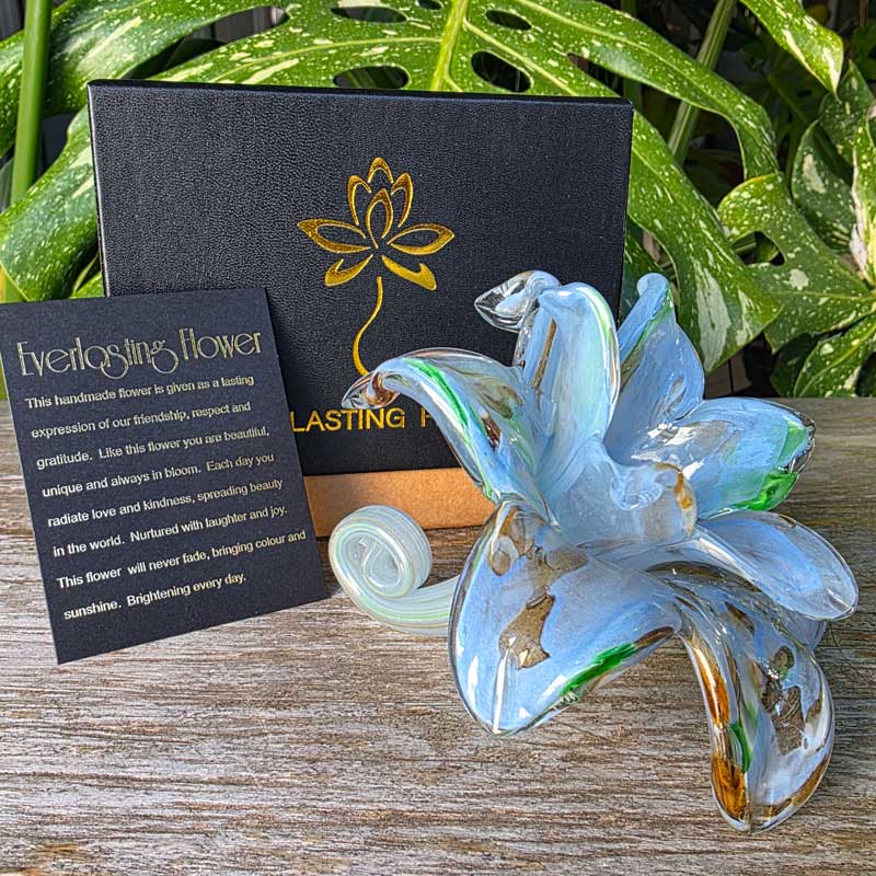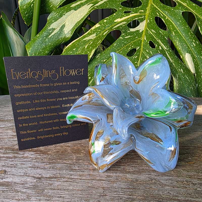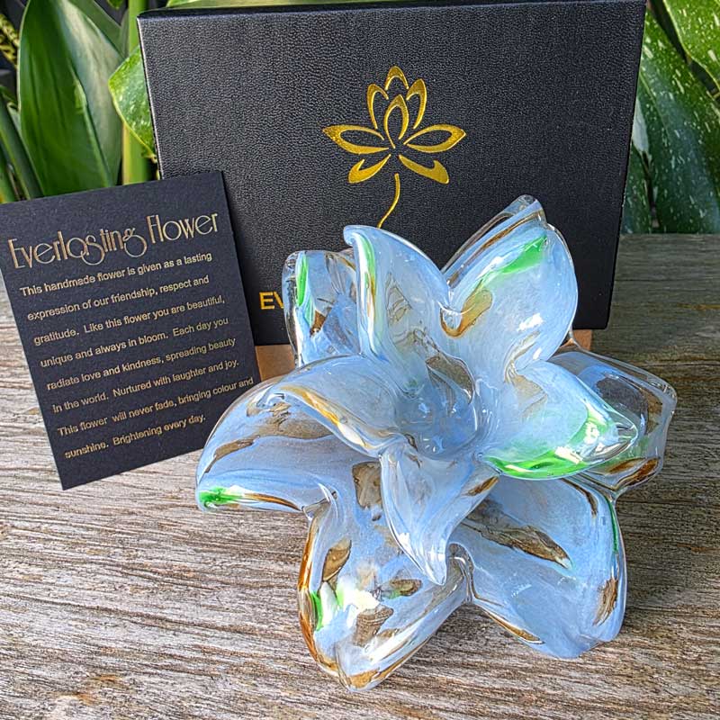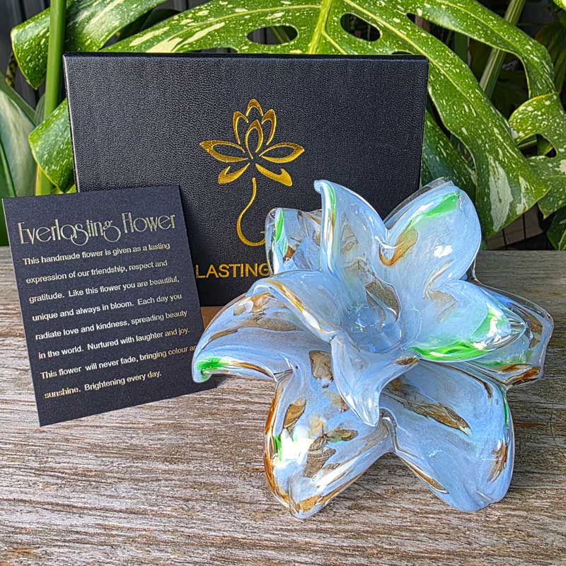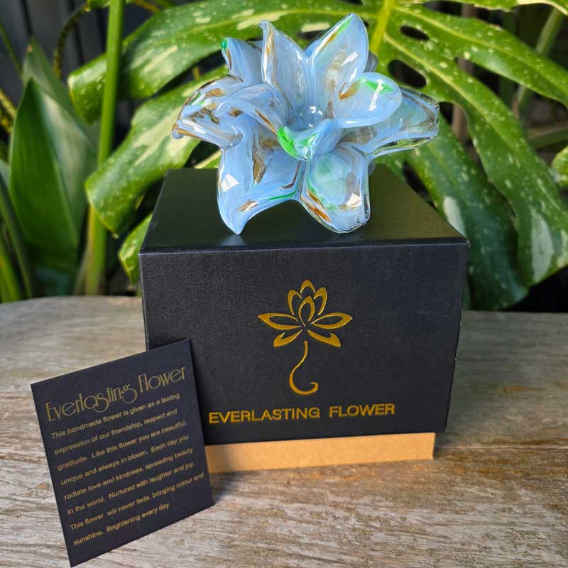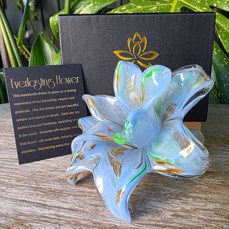 Show someone how much you care with the unique gift of an Everlasting Flower! This stunning Everlasting Flower has been hand made and mouth blown to create a one of a kind piece, perfect for a one of a kind friend, family member, partner or loved one!