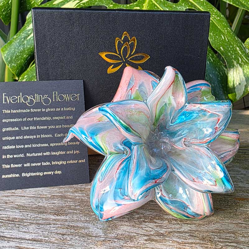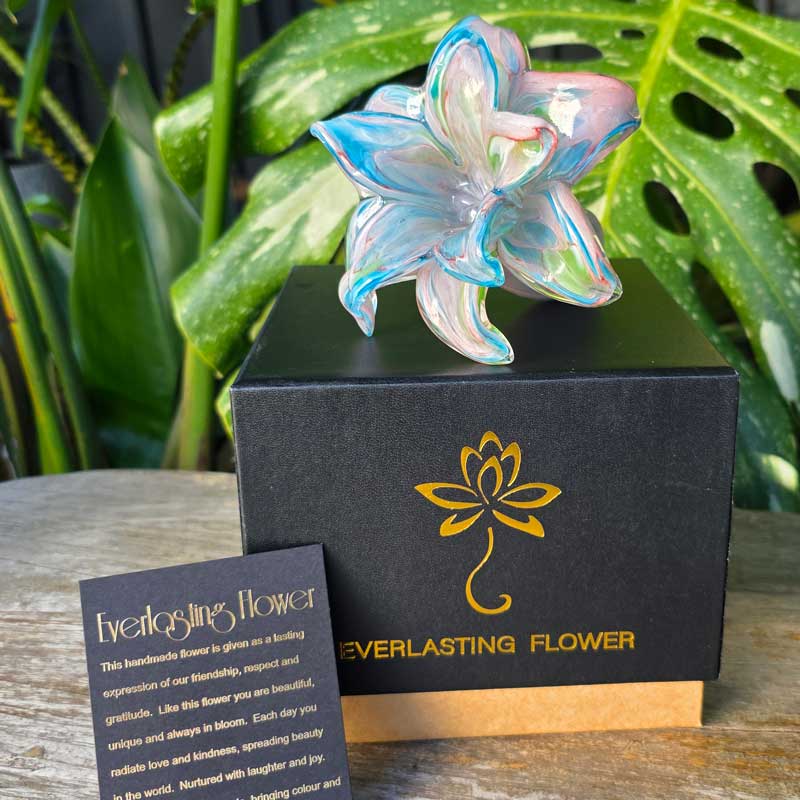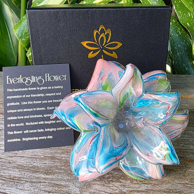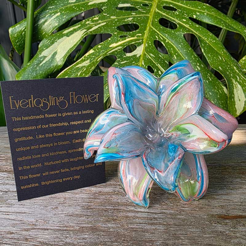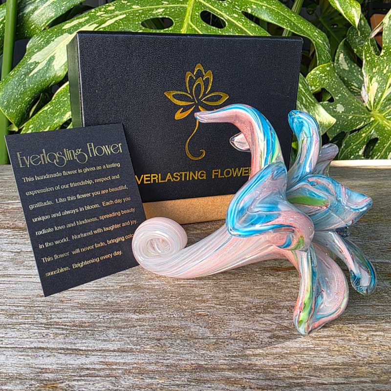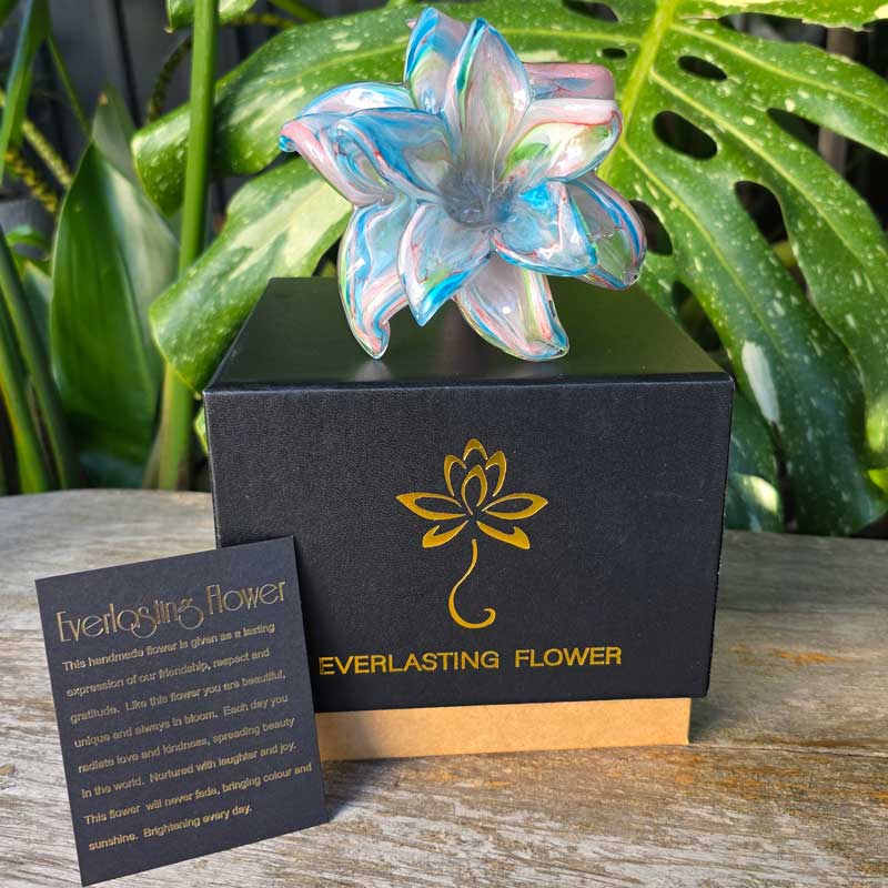 Show someone how much you care with the unique gift of an Everlasting Flower! This stunning Everlasting Flower has been hand made and mouth blown to create a one of a kind piece, perfect for a one of a kind friend, family member, partner or loved one!