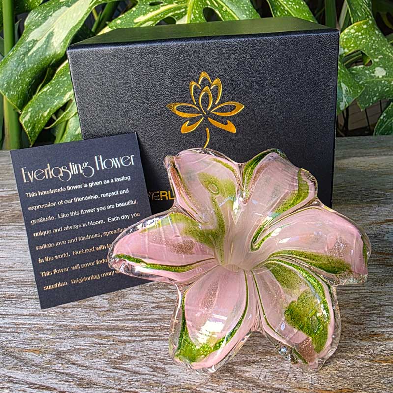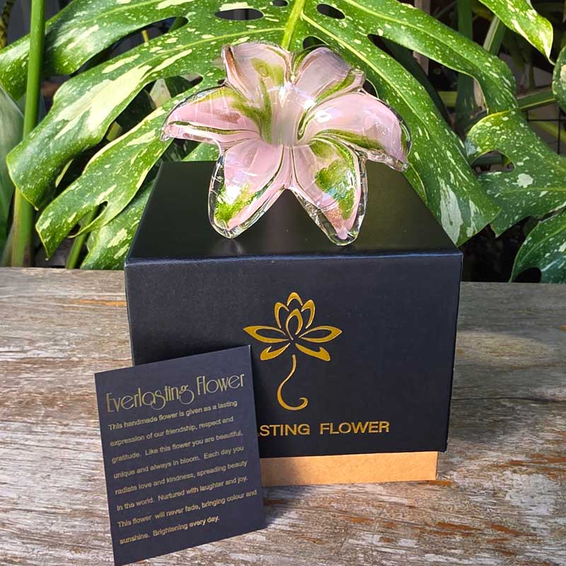 Show someone how much you care with the unique gift of an Everlasting Flower! This stunning Everlasting Flower has been hand made and mouth blown to create a one of a kind piece, perfect for a one of a kind friend, family member, partner or loved one!